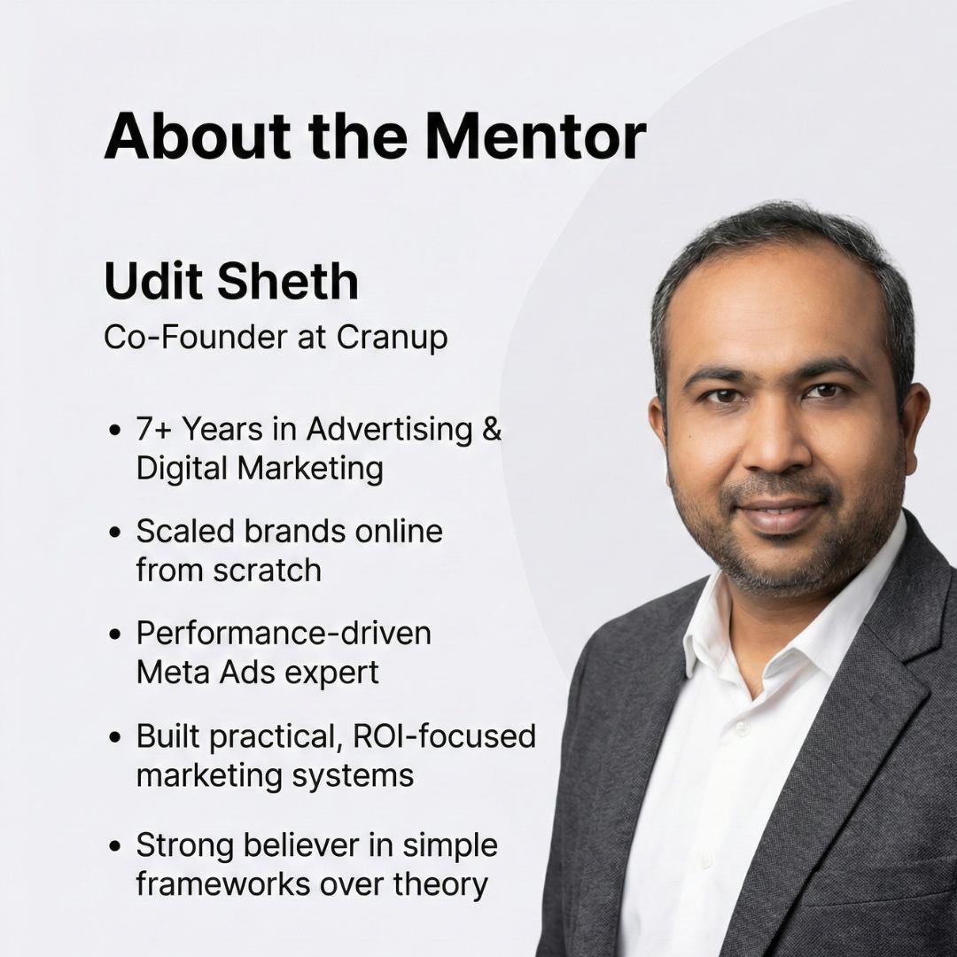 Are you a founder, D2C marketer, student, or someone who wants to level up digitally? This course is your shortcut to mastering Meta (Facebook & Instagram) ads intelligently β without agency fees, confusion, or jargon.